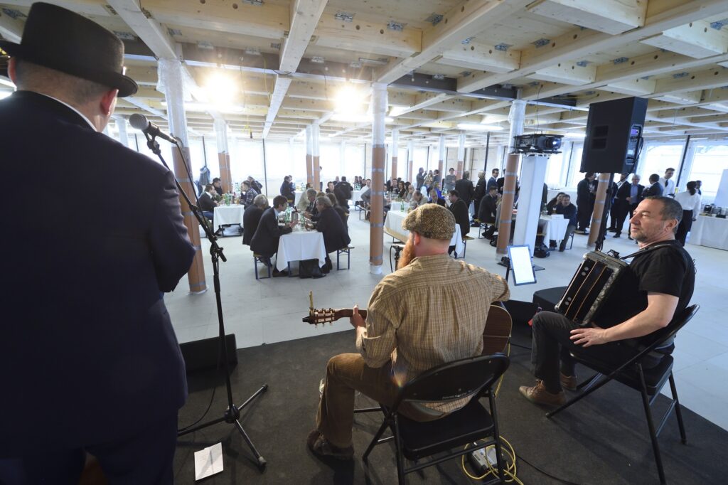 Musikalische Untermalung. Blick Richtung VeranstaltungsteilnehmerInnen